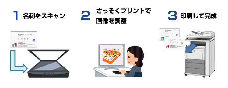 実物の名刺をスキャンして、すぐに複製印刷するサービスです。